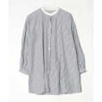 ブラウス シャツ コットンポプリン フロントパッチワーク ストライプシャツ レディース