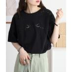tシャツ ロゴプリント パッチワーク刺繍 半袖Tシャツ レディース