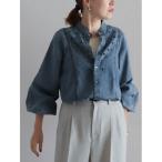 ブラウス シャツ カットワークデニム スタンドネックブラウス レディース