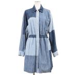 【美品】DOLCE&GABBANA ドルチェアンドガッバーナ デニムシャツワンピース パッチワーク ロゴ コットン100 ギャザー レディース 38 紺 伊製