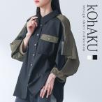 シャツ 七分袖 レディース トップス 羽織 異素材 襟付き シャツ生地 ナイロン生地 綿混 配色 ドッキング デザインシャツ ゆったり 50代 春「メール便可」「10」