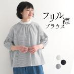 【2枚で300円OFF!】即納 ブラウス シャツ レディース 七分袖 バンドカラー 綿 コットン トップス まぁるいカーブのアトリエブラウス 春服 秋服 ゆったり 母の日