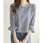 ブラウス シャツ 七分袖フリルデザインギンガムチェックブラウス レディース