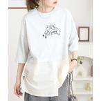 tシャツ PT+刺繍異素材使い七分袖BigTシャツ レディース