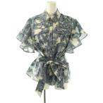 グレースコンチネンタル GRACE CONTINENTAL ジュイジャガードサファリシャツ 半袖 38 アイボリー ブルー /DO ■OS レディース