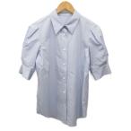 エストネーション ESTNATION 美品 パフスリーブコットンシャツ 半袖 ブラウス 変形 38 水色 42-109-10-060091 レディース