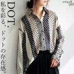 【予約:5月中旬納期】ドット柄 切り替え シャツ レディース 長袖 綿100 送料無料・再入荷 50ptメール便可