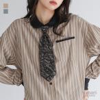 シャツ ブラウス レディース トップス 長袖 ストライプ柄 襟付き 丸襟 ネクタイ付き レース レイヤード 50代 春 秋 冬「メール便可」「10」