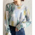 tシャツ 総柄ニュアンス柄長袖クルーネックシアートップス レディース