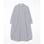 「DANTON」 ストライプ柄シャツワンピース 36 ネイビー レディース