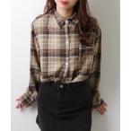 ブラウス シャツ チェック柄ショート丈シャツ レディース