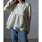 tシャツ 異素材切替ドット柄ペプラムプルオーバー レディース