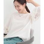 ブラウス シャツ 「洗濯機可/7分袖」インせず着られる 透かし編み柄が上品な レース切替シャツ レディース