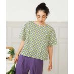 総柄 フレンチスリーブ デザインプルオーバー トップス レディース 夏 シャツ ブラウス ドルマン クルーネック 丸首 プリント柄 Yoshi Yoshi by pj ヨシヨシ バイ ピージェイ