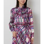 ブラウス シャツ 「NARACAMICIE」「セットアップ対応」ビッグチェック柄サテンボウタイ長袖ブラウス レディース