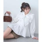 ブラウス シャツ ショルダーフリルボウタイブラウス レディース