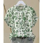 ブラウス シャツ リーフ柄プリントフレンチ袖ブラウス レディース
