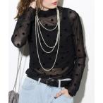 tシャツ フロッキー 水玉柄ドット チュールレース長袖カットソー レディース