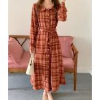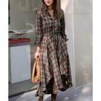 ワンピース チェック柄リボンシャツワンピース