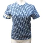 クリスチャンディオール Christian Dior トロッター Tシャツ カットソー チビT ロゴ柄 総柄 ライン 半袖 36 約S ブルー グレー 系 ■MNK1