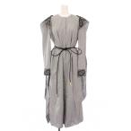 フェンディ FENDI シャツワンピース マキシ ロング 長袖 クルーネック レース 花柄 切替 ベルト ストライプ柄 40 グレー 黒 ブラック