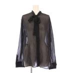 クリスチャンディオール Christian Dior ボウタイシャツ ブラウス シアー シースルー 長袖 リボン シルク ドット柄 I42 黒 白 ■BM