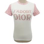 クリスチャンディオール Christian Dior ジャドール J'ADORE DIOR Tシャツ ロゴ プリント トロッター柄 切替 44 約XL ホワイト ピンク