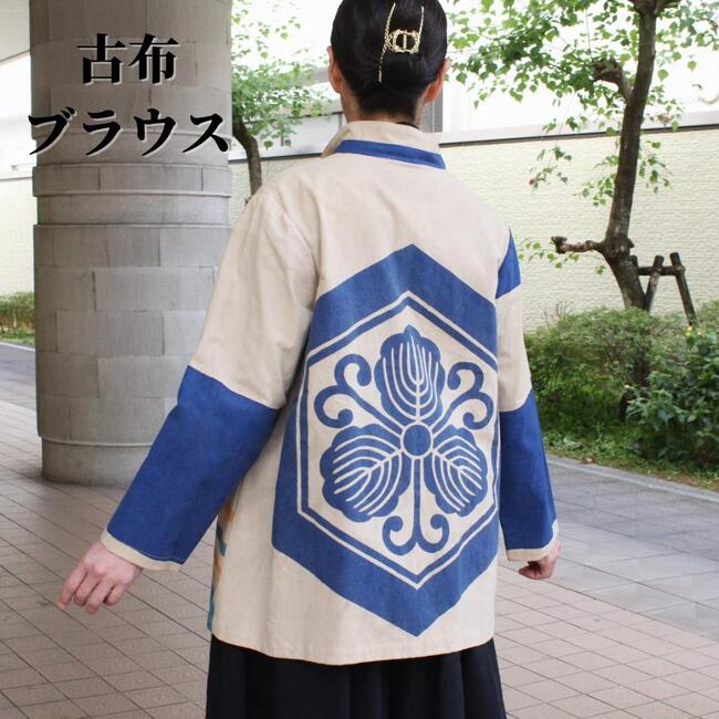 【楽天スーパーSALE10%OFF 】古布 舞祝ブラウス ジャケット 作家一点もの 日本製 送料無料 ベージュ レディース ミセス シニアファッション 50代 60代 秋冬春 トップス ブラウス シャツ 長袖 祝 舞 おめでたい 和風 和柄 洋服
