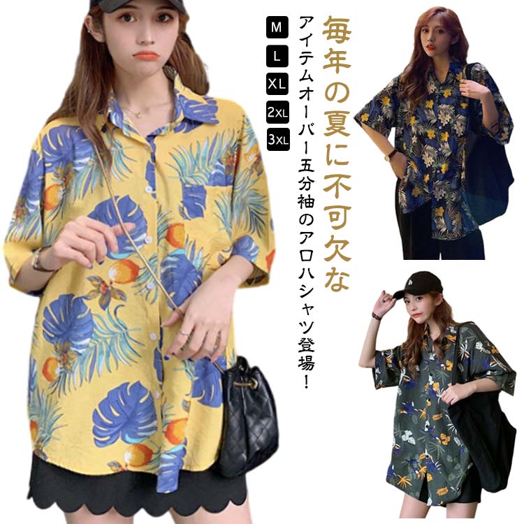 五分袖 おしゃれ 花柄 レディース オーバーサイズ 総柄シャツ 冷感 柄シャツ トロピカル柄 カジュアルシャツ カジュアルシャツ ビッグシルエット 開襟 総柄 通気性 ボタニカル柄 速乾 半袖シャツ 羽織り レトロ ルーズ カジュアル ビーチ リゾート 海辺 旅行 アロハシャツ
