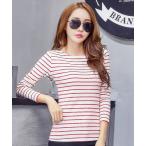tシャツ レディース 長袖ボーダー柄クルーネックロングTシャツ レディース