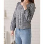 ブラウス シャツ 千鳥格子柄スクエアネックブラウス レディース