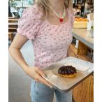 tシャツ 小花柄パフスリーブTOPS レディース
