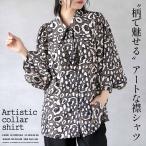 シャツ トップス “柄で魅せる”アートな襟シャツ レオパード柄 変形襟 モード 羽織 オーバーサイズ 長袖 グレー 春 秋 秋冬 モーリー OTONA 40代 50代 60代