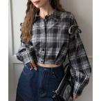 ブラウス シャツ チェック柄クロップドシャツ レディース