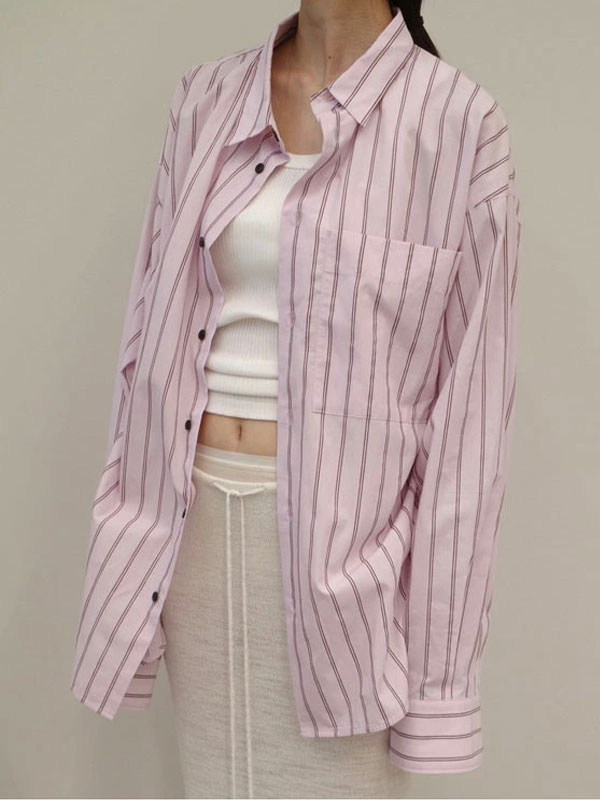 レディース THE SHINZONE ザ シンゾーン STRIPE DADDY SHIRT ワイドシャツ オーバーサイズ ストライプシャツ 長袖シャツ 24SMSBL04