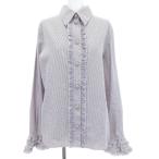 爆買 シャネル CHANEL フラワーココマーク ストライプ シャツ ブラウス コットン ホワイト グレー P73926V65463 レディース 中古