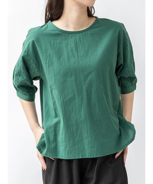 【SALE/44%OFF】Hare no hi 袖刺繍ブラウス ルディックパーク トップス シャツ・ブラウス ブルー ホワイト
