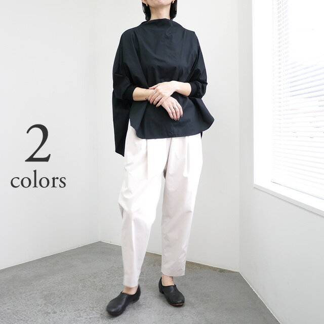 mizuiro ind ミズイロインド ワイド コットン プルオーバー [1-230116] / レディース トップス シャツ ブラウス 長袖 ロングスリーブ ボトルネック ホワイト 白 ブラック 黒 ベーシック シンプル カジュアル ミニマル きれいめ オーバーサイズ ゆったり リラクシング 日本製