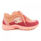 極美品★CHANEL シャネル G02819 リボン付 ココマーク スパンコール フラットシューズ ピンク系 36.5 保存袋付き イタリア製 レディース