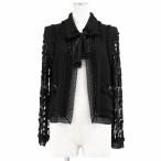 CHANEL シャネル ジャケット ツイード レーススリーブ 09C P34723 2009年製 CC ロゴ リボンタイ ビジュー ウール レディース 40 黒 仏製
