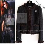 シャネル ジャケット CHANEL ブラック 黒系 コットン ウール フリンジ トリム 東京コレ 限定版 ツイード カール・ラガーフェルド 超美品 38