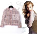 シャネル ジャケット CHANEL ピンク ベージュ ノーカラー ツイード ココボタン カール・ラガーフェルド 貴重 人気 美品 36