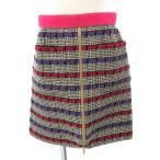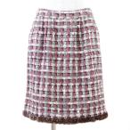 シャネル スカート CHANEL ベージュ マルーン レッド マルチカラー ツイード 美品 36