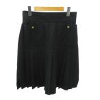 シャネル CHANEL 美品 ヴィンテージ プリーツスカート ココマーク 金ボタン ひざ丈 黒 ブラック 0127 ■MNK4 レディース
