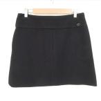 良品 CHANEL シャネル ロゴプレート ミニスカート 38サイズ ブラック レディース 古着 中古