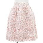 【極美品】CHANEL シャネル スカート ファンシーツイード x リボン 36 レディース P58527 2018年製 CC ロゴ チャーム 白 赤 桃色 伊製