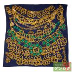 シャネル CHANEL 大判 ヴィンテージチェーン柄 スカーフ シルク ホワイト ネイビー レディース 可愛い ギフト【中古】【Bランク】