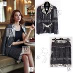 シャネル スーツ セットアップ CHANEL ブラック ウール ツイード ジャケット トップス スカート カール・ラガーフェルド 貴重 超美品 40 42
