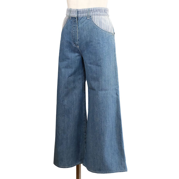 送料無料 本物 希少 CHANEL シャネル デニムパンツ コットン×ポリエステル インディゴブルー×ホワイト 34 レディース P47724W05474 14P 790-10