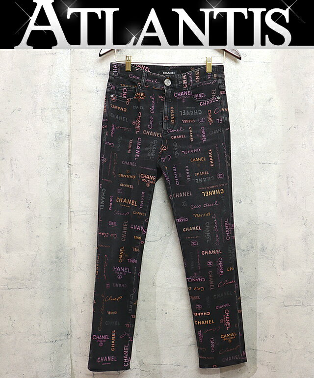 【広尾店】美品 シャネル CHANEL プリントロゴデニムパンツ size38 黒 【14705】